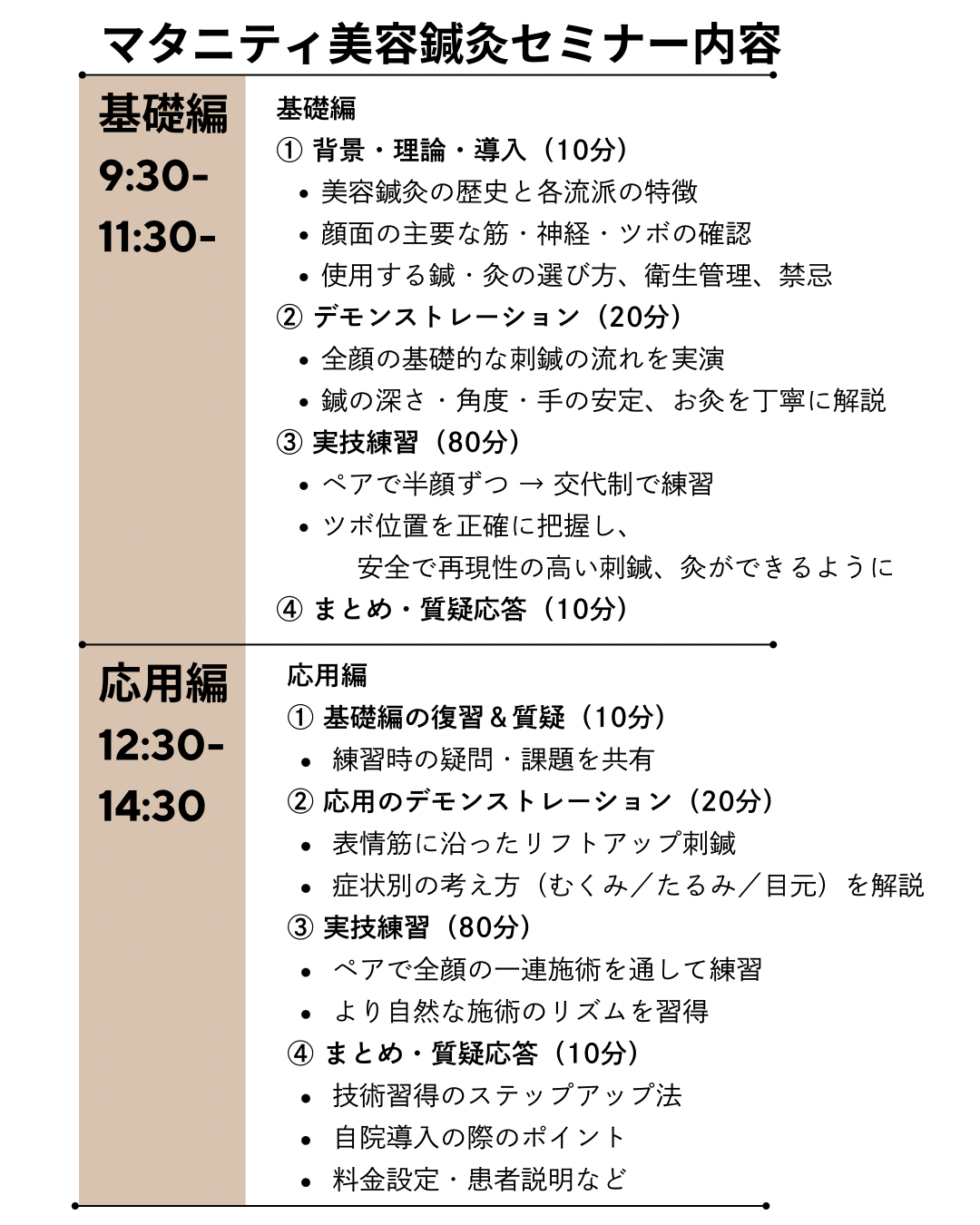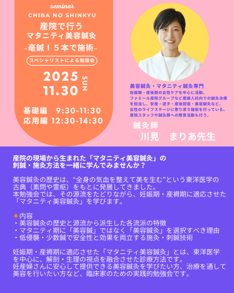 産院の現場から生まれた「マタニティ美容鍼灸」の刺鍼・施灸方法を一緒に学んでみませんか?